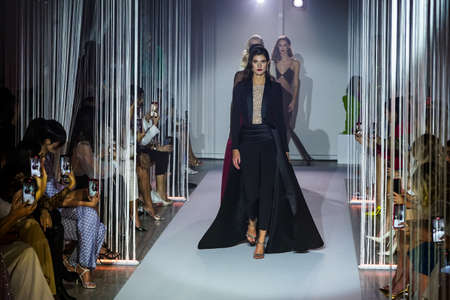 Zagreb, Croatia - March 22, 2019: Fashion models wearing Ivica Skoko fashion collection on the catwalk at the Bipa Fashion.hr fashion show in Zagreb, Croatia.