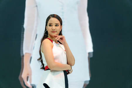 Bangkok-Thailand August 25,2018 : Unidentified woman presenters model at the Mitsubishi stage during the Bangkok International Grand Motor Sale 2018 in Bangkok International Trade & Exhibition Centre.