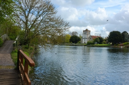 Thames footpath passing by Bisham All Saints Church by Marlow