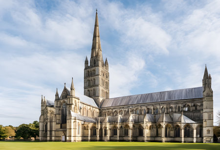 Salisbury Anglican medieval gothic Cathedral, formally known as the Cathedral Church of the Blessed Virgin Mary, built 1220 to 1258