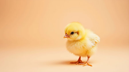 Adorable fluffy yellow chick on soft peach background cozy and inviting