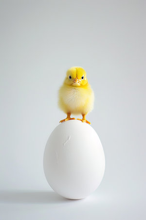 A close-up image capturing the moment a fluffy yellow chick emerges from its egg, showcasing the beauty of new life