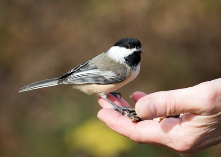 The black-capped chickadee is a small, non migratory, North American songbird that lives in deciduous and mixed forests. It is a very underrated friendly bird that will gladly take food from hands.