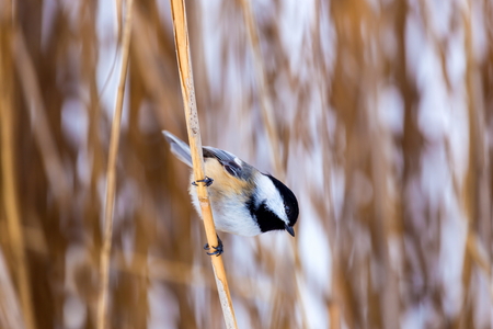 Black capped chickadee bird in winter isolated.