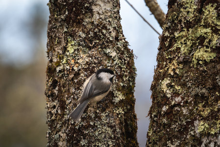 black-capped chickadee on a mossy tree