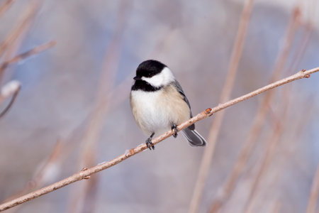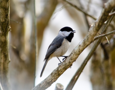 Black-capped Chickadee on a branch in the winter