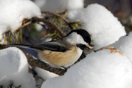 Picture of a Black-capped Chickadee (Poecile Atricapillus) in the snow