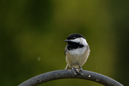 Black-capped chickadee, Poecile atricapilla, perched on a bird bath