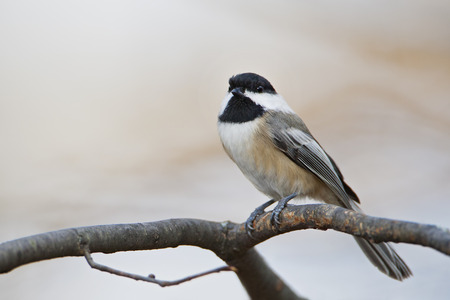 Carolina Chickadee (Poecile carolinensis) sitting on tree branch, Amherst Island, Canada
