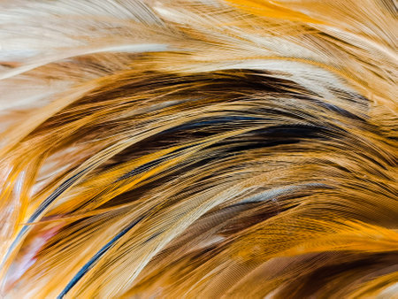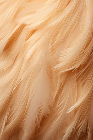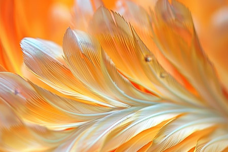 A stunning macro photograph capturing the intricate detail and warm, glowing tones of golden orange feathers. The soft, layered plumage creates a rich, abstract texture, evoking a sense of natural beauty, comfort, and rustic elegance. Perfect as a background for designs celebrating nature, autumn, or organic themes.