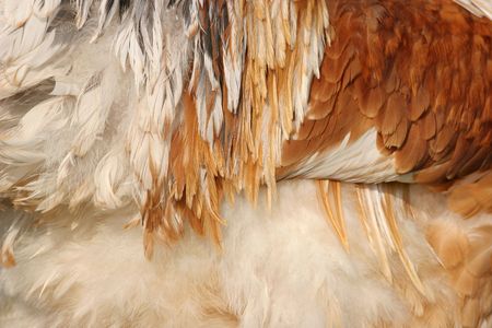 Abstract of the feathers of a Chinese Brahma cockerel in white, red, gold and brown.