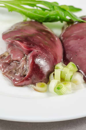 Raw chicken liver on white plate