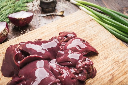 Raw chicken liver over board ready for cooking