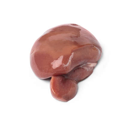 Raw beef liver on a white backgroung.