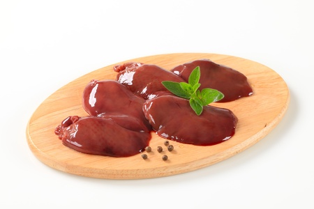 Raw chicken liver on cutting board