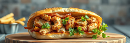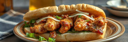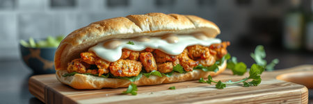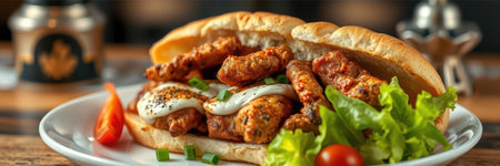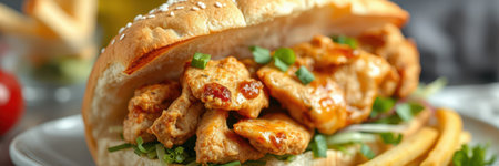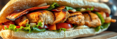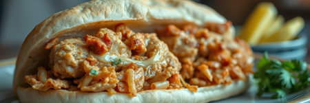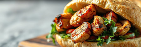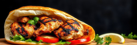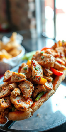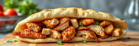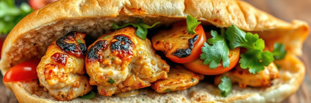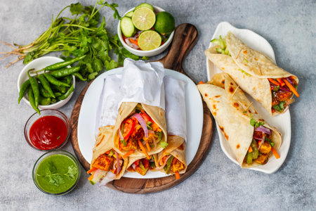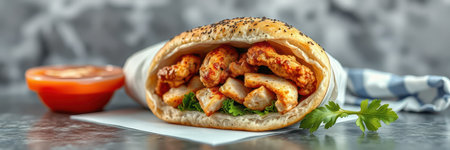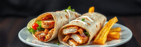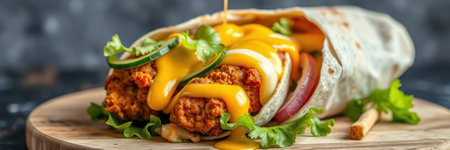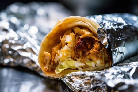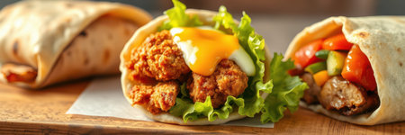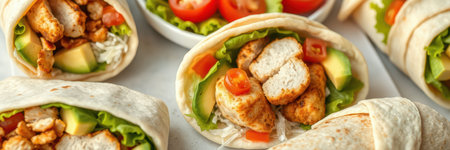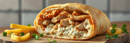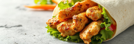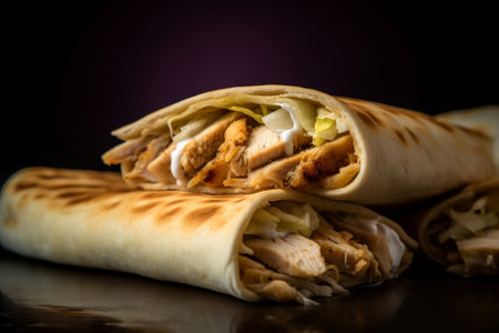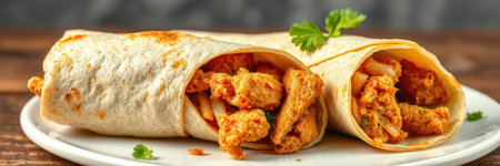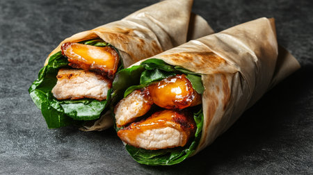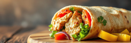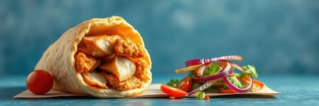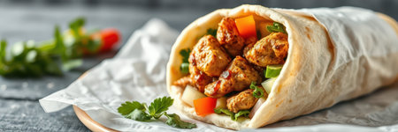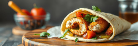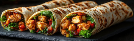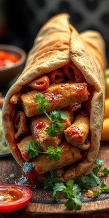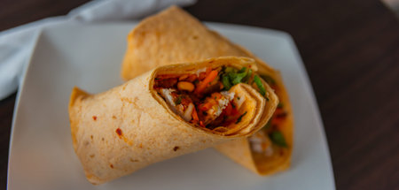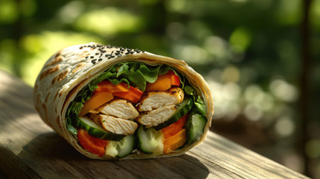 Delicious chicken wrap with vibrant vegetables and spices inside