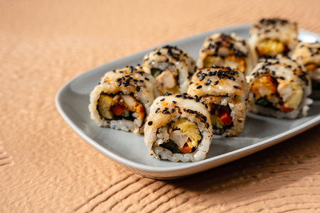 sushi rolls with sesame seeds and cheese