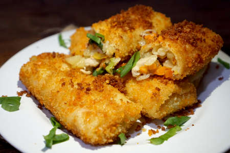 risoles, delicious fried meal made of flour skin with stuffing of carrot, potatoes, chicken, chili