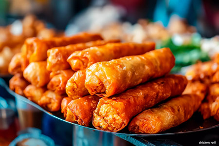 Pile of fried Malaysian spring roles on a local market in Malaysia