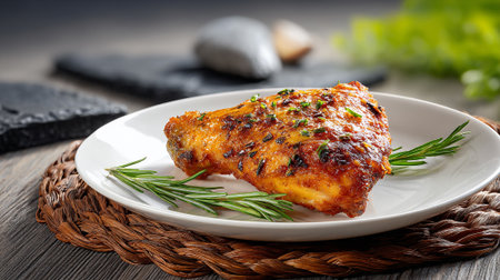 cooked chicken thighs displayed proudly on a plate, created with generative ai