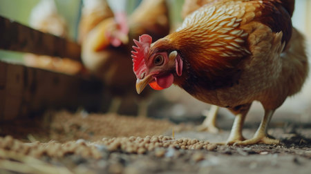Brown Hen Farm, Chicken Laying Eggs in the Countryside, Organic Agriculture and Food Production, Surrounded by Roosters, Nature Rural Charm