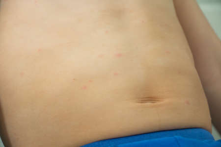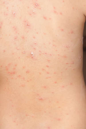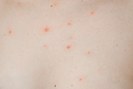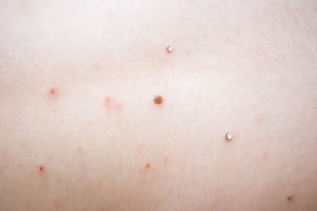 Papules on the skin of a patient with chickenpox close-up. Varicella Zoster virus.