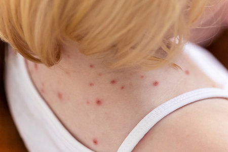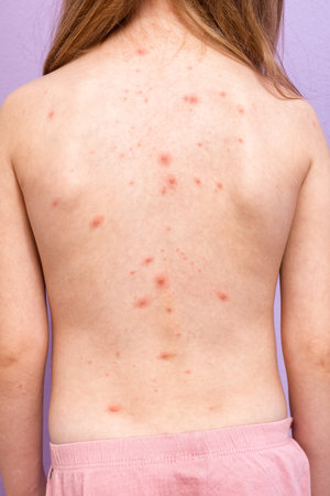 Child Experiencing Skin Condition Displaying Multiple Eruptions chickenpox Located on Their Back