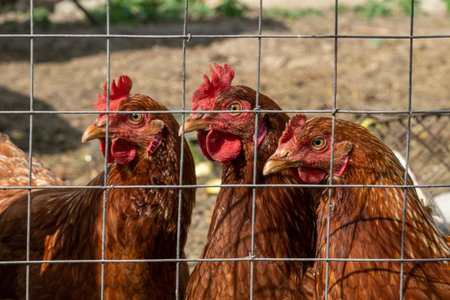 Brown Hen Farm, Chicken Laying Eggs in the Countryside, Organic Agriculture and Food Production, Surrounded by Roosters, Nature Rural Charm