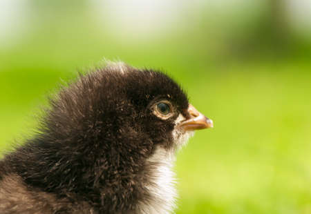 Cute little fluffy chick on the grass