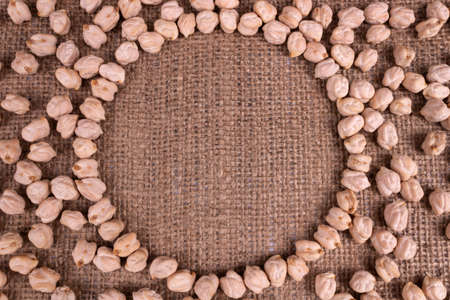 on a burlap of dark brown color beautifully arranged as a pattern the fruits of chickpea ram