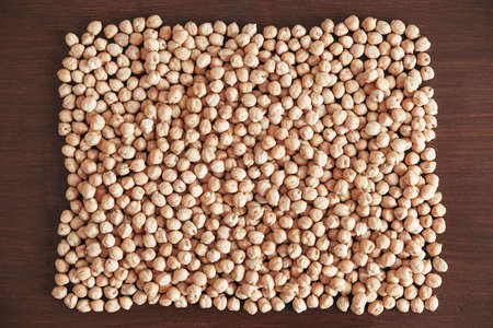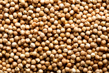 Dry chickpea background, top view. Background of chickpea seeds, close-up.