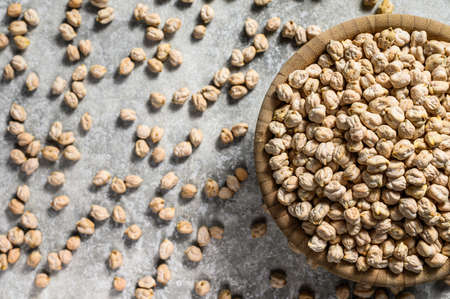 Raw organic dried chickpea texture background. Vegan healthy nutrition. Top view, copy space, healthy lifestyle concept
