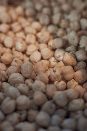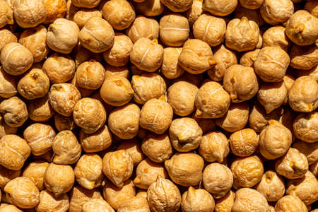 Close up chickpea bean seeds background. Healthy vegetarian nutrition component. Texture.