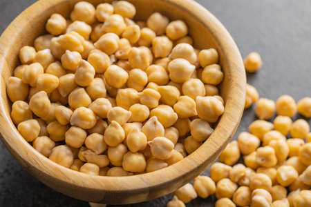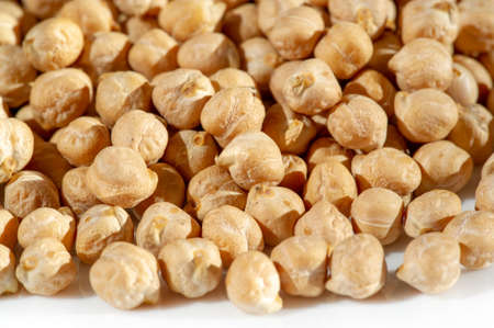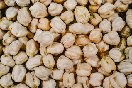 Raw chickpeas, partial close-up, dry, high-quality nutritious diet food
