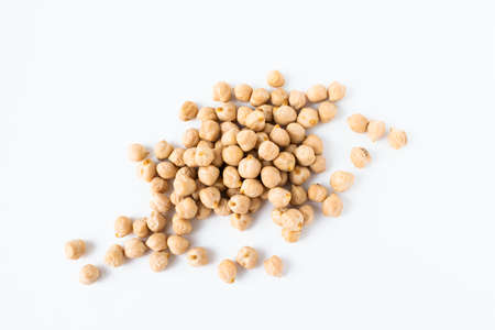 Garbanzo beans traditional Near Easten food. Pile of chickpeas on white background.