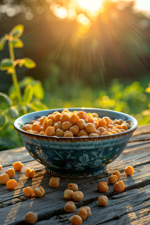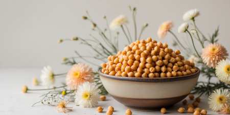 AI Generated. Roasted Chickpeas in a Bowl with Flowers