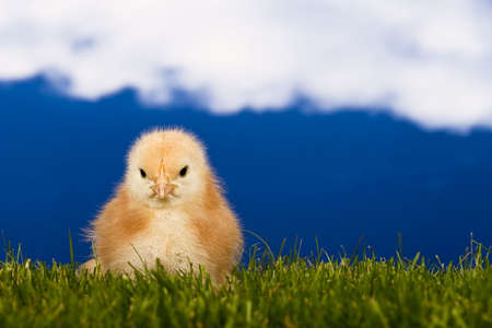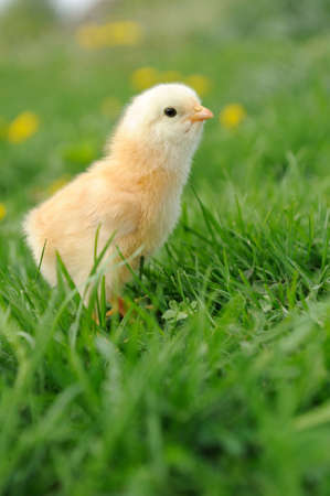 Cute little fluffy chick on the grass