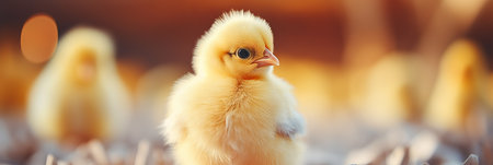 Close-Up of Adorable Yellow Chick in Warm Hazy Tones, Perfect for Banner Design with Space for Text. Panorama.