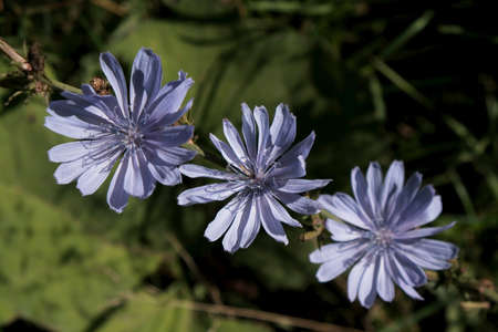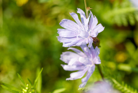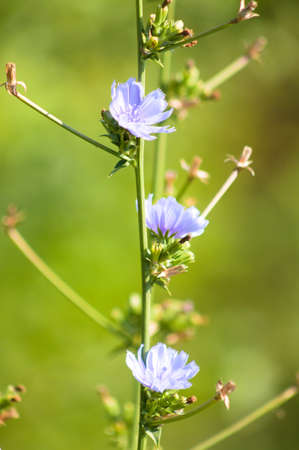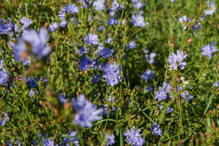 Chicory (Cichorium intybus) blooms in the wild in summer
