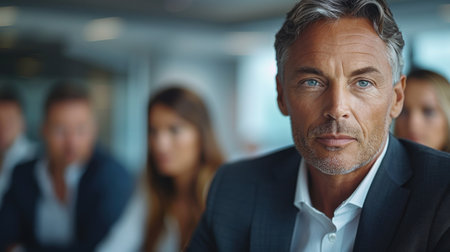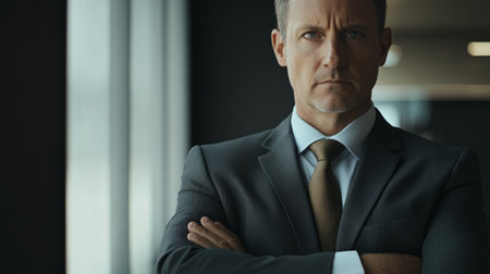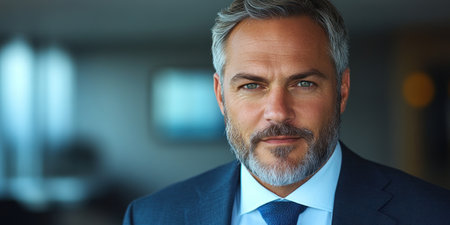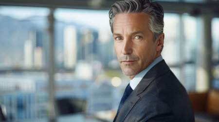 Confident Fifty-Year-Old Businessman with Gray Hair in Professional Suit, Exuding Experience