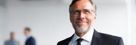 Confident Mature Businessman with Glasses in Suit, Professional Leadership Portrait for Business Use