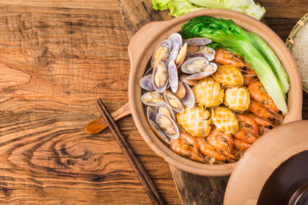 Cantonese style seafood rice pot