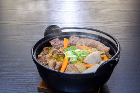 Sukiyaki in traditional Japanese Cast Iron Pot