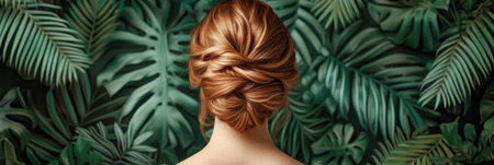 Exquisite women's hairstyle with a vintage tropical pattern background