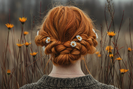 Woman with beautiful hairstyle with flowers