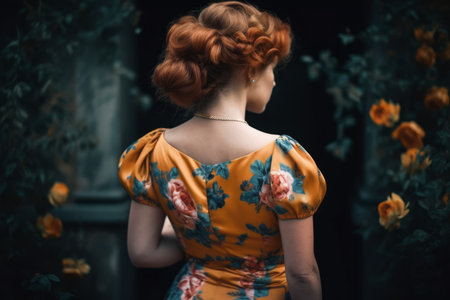 Woman retro back dress. Romantic victorian. Generate AI