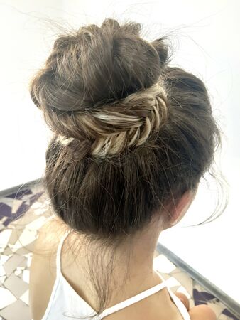 bun hairstyle on white background