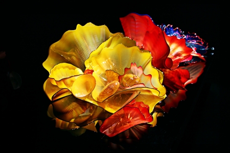 red and yellow glass flames sculpture