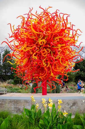 Denver, Colorado, USA-August 12, 2014. Large glass sculptures by Dale Chihuly in the garden.