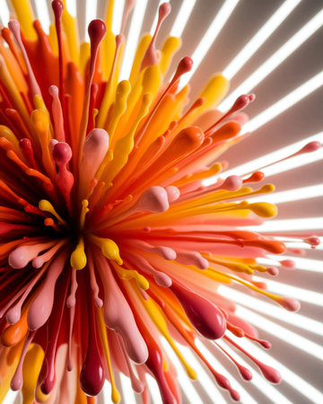 A dynamic composition featuring a central explosion of colorful paint, radiating outwards with a textured, abstract aesthetic.